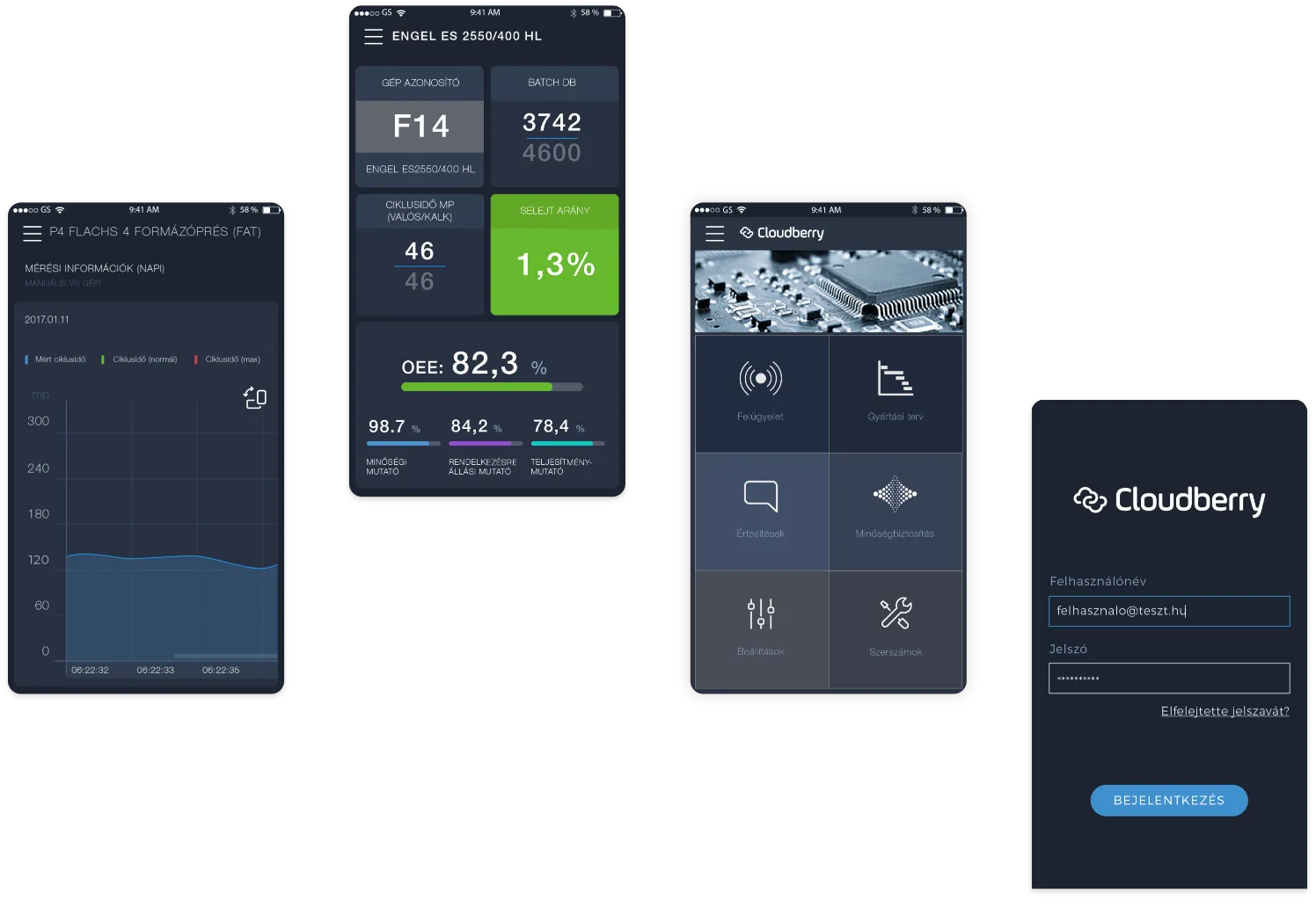 Cloudberry is an Industry 4.0 development aiming to improve production efficiency. Its role is the synchronization of the machines’ operation and the continuous monitoring and analysis of the production processes. The system is suitable for workflow optimization of a single company or a whole supply chain. In addition to the desktop screens, the current production status is shown to the supervisors and workers on a dedicated public display.