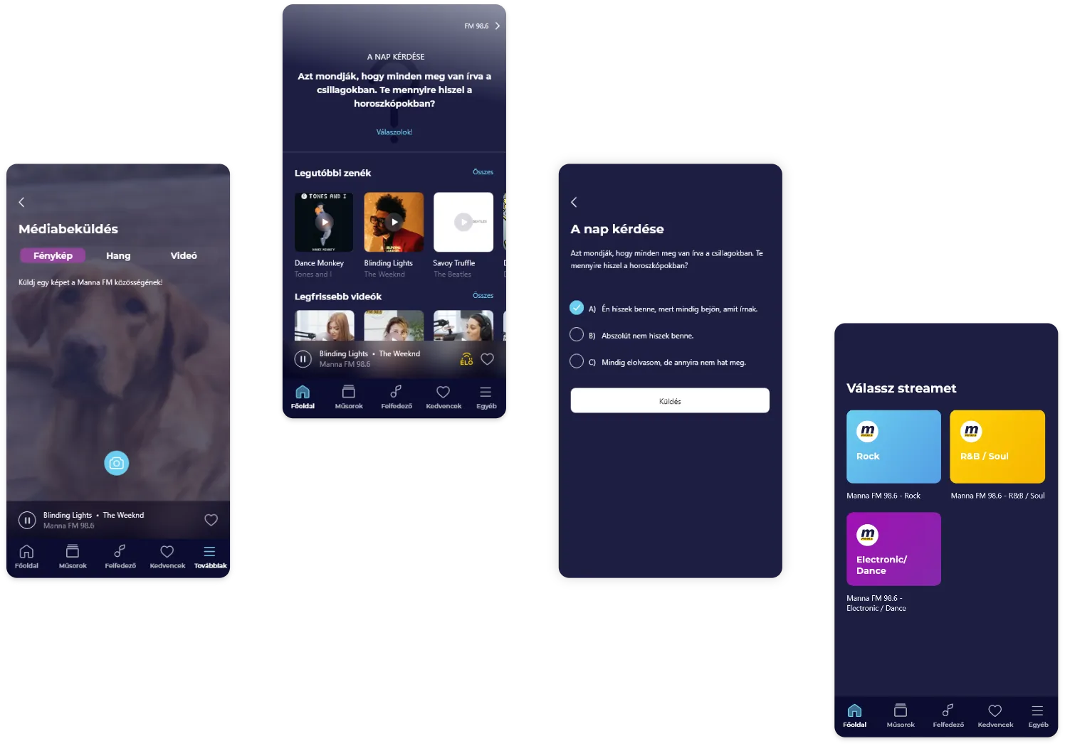 Manna Fm’s app is a version of our interactive radio product, which not only offers a wide range of music and media content, but also allows two-way active communication. The application also includes an admin interface through which radio presenters can edit content, advertise, create lists and communicate with users