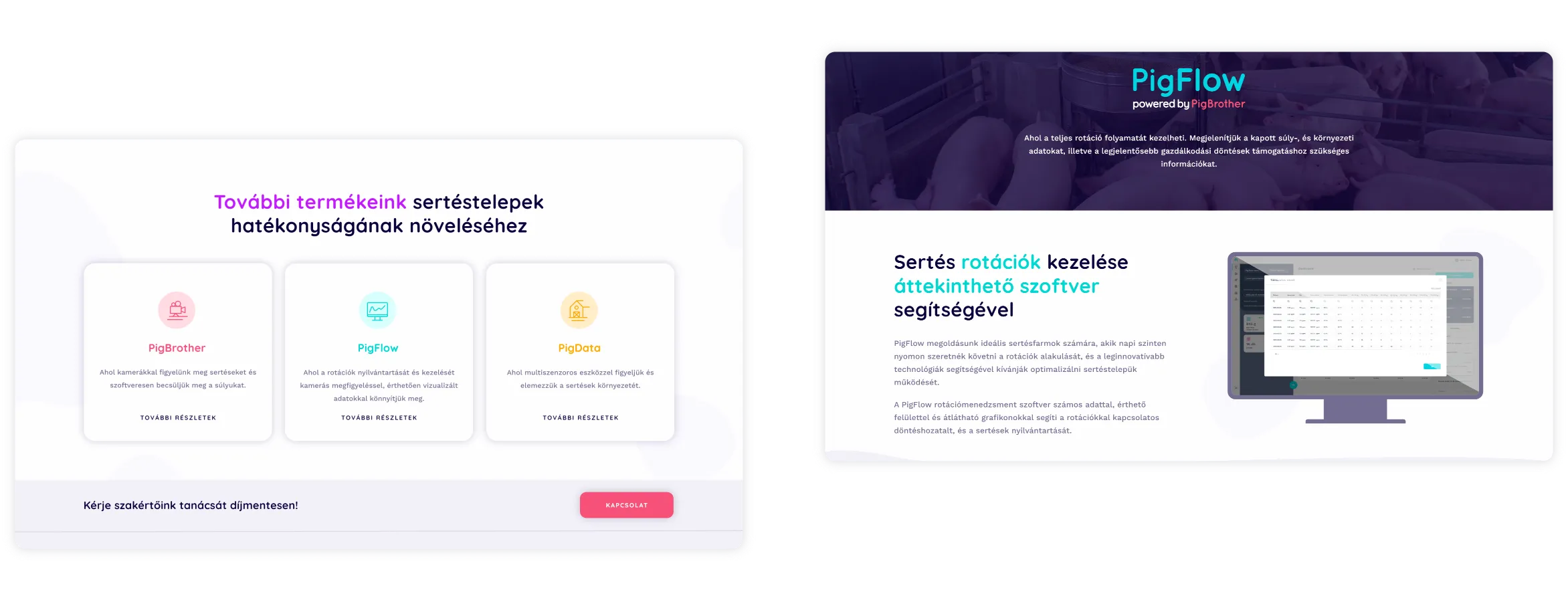 A PigBrother küldetése, hogy a sertéshizlalási ágazatban biztosítsa a növekedés pontos tervezhetőségét, optimálisan felhasználja a rendelkezésre álló erőforrásokat, valamint előre jelezze a tervet befolyásoló külső, környezeti vagy belső, élettani jelenségeket, amelyek kihatással vannak a súlygyarapodásra. Fontos feladatunk, hogy a magas humánerőforrás-igényt automatizált, precíziós gazdálkodással minimalizáljuk, amely enyhíti az ágazatra jellemző munkaerőhiány problémáját. A rendszer gépi tanulási módszerek segítségével dolgozza fel a karámokban elhelyezett IoT eszközöktől érkező nagy mennyiségű adatot. Az előrejelzéseket és javaslatokat felhasználóbarát formában egy webes felületen jelenítjük meg, hogy minél hatékonyabban támogassuk a döntéshozást.